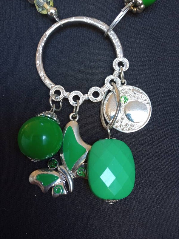 Met bedels en donkergroene kralen